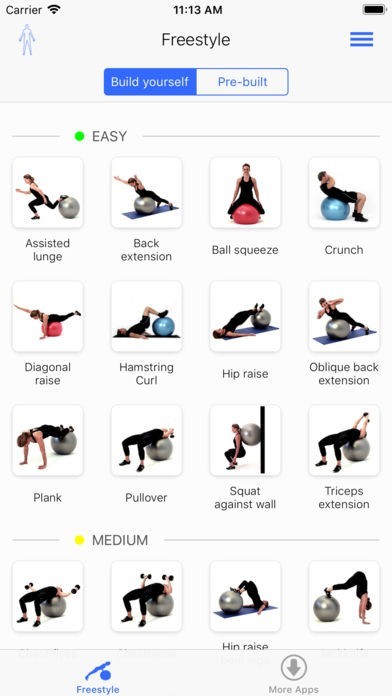 App Storeより引用Virtual Trainer ジムボール バーベルで最大限の結果を得よう !