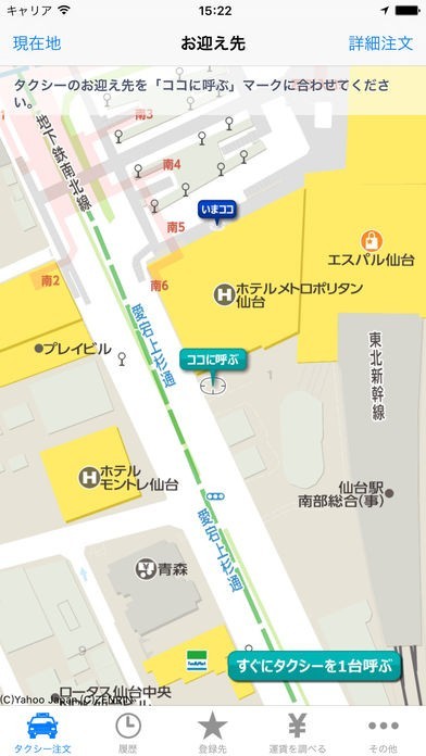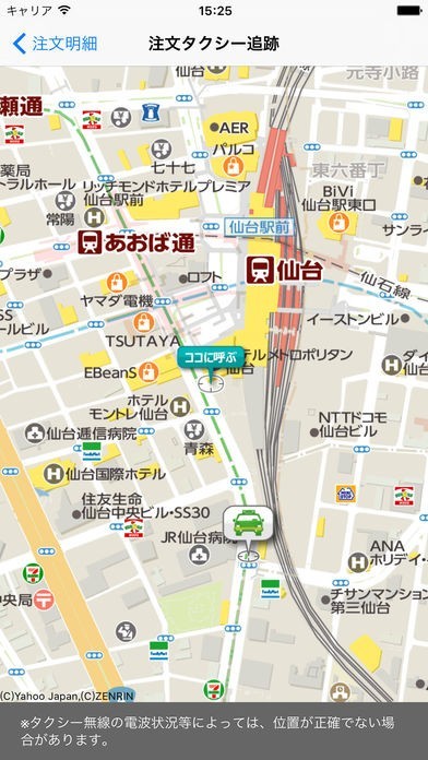 1.地図を使って、タクシーのお迎え先を指定することができます。仙台市からご注文いただけます。