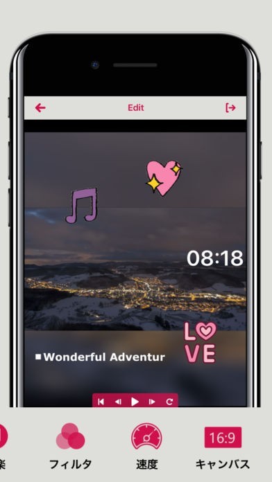背景音楽/フィルタ/スピード/表現/テキスト/スクリーンショット/アバター