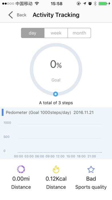 1日1000歩をゴールとして達成状況を監視することができます。今までに歩いた歩数から計算した達成進捗率を%で表示。やらなきゃという気持ちにさせてくれる健康促進機能となっています。