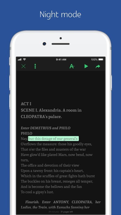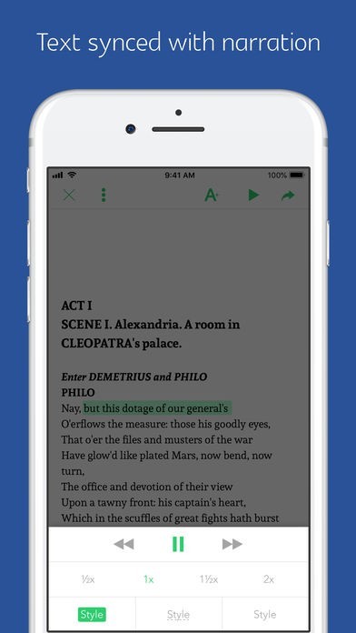 App Storeより引用This app combines Shakespeare's complete works with professional human narration.