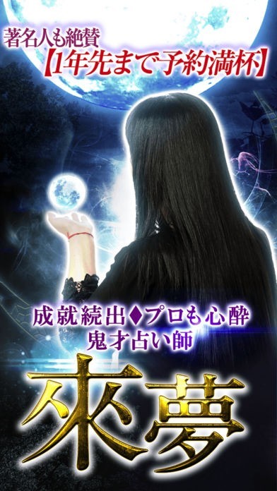 App Storeより引用完全紹介制なのに“1年先まで予約満杯”著名人も絶賛する的中力×成就力 今、占いたくても占えない激レア鑑定に【特別招待!】予約が全然取れない月読みの鬼才【來夢】による“神技鑑定”をご体感ください。