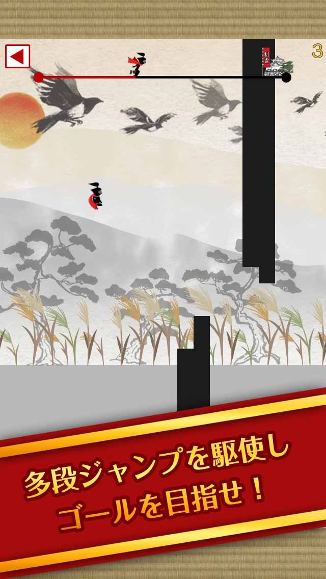 激ムズ!シノビの里100!は、ゴールに到達して一人前の忍者となるべく進み続ける横スクロールアクションゲームアプリです。あなたは忍者となって障害物をジャンプでよけながら進みます。障害物にぶつかってもアウトですが、ジャンプしすぎて場外になってしまってもアウトになってしまうのでバランスよく避けることが求められます。登場するステージは100種類以上でとことんやり込むことが可能です。始めは3種類の巻物を集めることが目的となります。