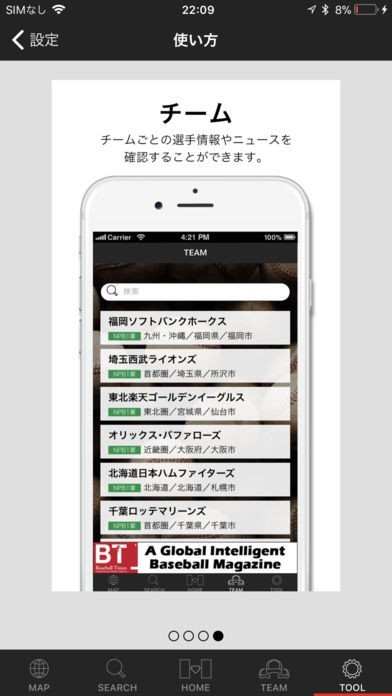 チームごとに情報が見られるのでそれぞれチェックしてみましょう。ホームチームを設定しておけばファン球団の情報をトップに表示することも可能です。毎日確認することで成績や動向を確認できます。