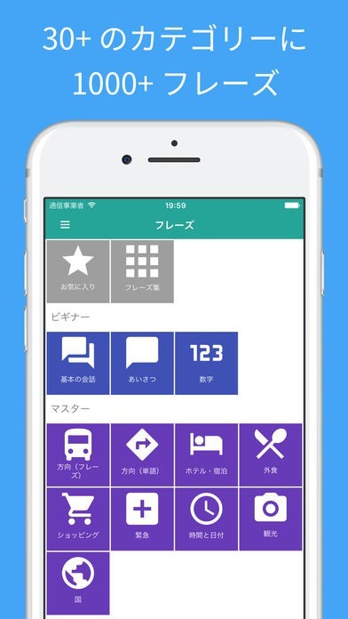 * 会話 * 健康 * 空港 * 質問 * 場所 * 食べ物 * 野菜 * 果物 * 色 * 恋愛 * 郵便局 * 携帯&インターネット * 銀行 * 職業 * ビジネス会話 * 趣味 * 感情 * 身体 * 動物 * 家族 * 国