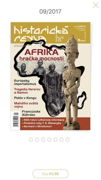 App Storeより引用Historická revue je v súčasnosti jediný slovenský magazín o histórii a archeológii, vychádza 12-krát do roka.