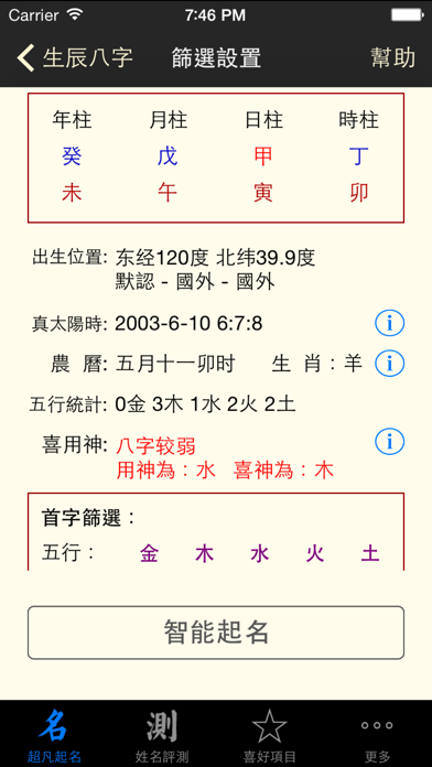 2. 精确八字排盘,专业的命理分析,帮助您选择适合喜用神的好名字