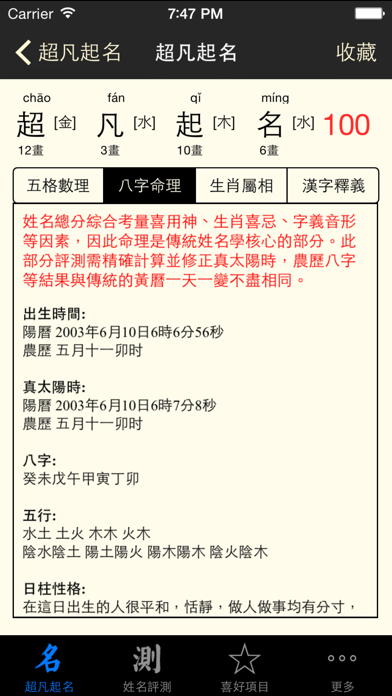 超凡八字起名测名のスクリーンショット
