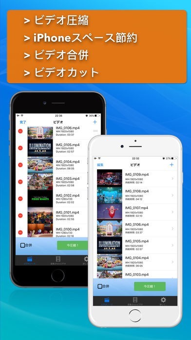 撮影した動画をそのまま保存しておくとどんどん容量を圧迫してしまいます。あまり見ない古い動画などはこのアプリを使って圧縮してみましょう。動画のクオリティはほぼそのままに容量を半分以下に抑えることが可能です。