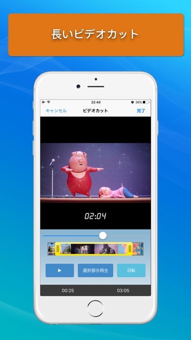 不要な部分をカットする作業やビデオを同士を繋ぐなどの編集も行えるようになっています。その他にも動画の向きを修正する回転もできます。動画を撮影する人はこのアプリを使ってより動画を楽しんでください。