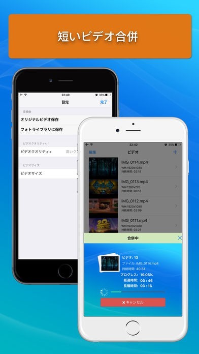 このアプリを使えば、iPhoneデバイス内にある短い動画ファイル同士を合併して一つの動画にする編集機能を使うことができます。SNSに一つの動画としてアップロードしたいときにおすすめです。