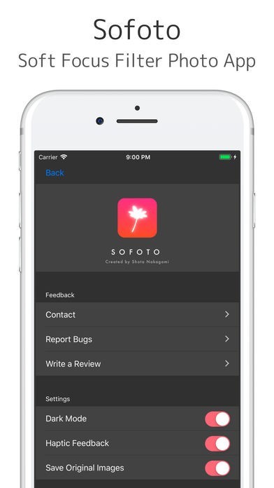 作成した画像をInstagram等のSNSに素早く投稿出来るようになっています。周辺減光やシャドウ等の複数の編集ツールが用意されているため、幻想的な写真に素早く変身させたい時に役立ちます。
