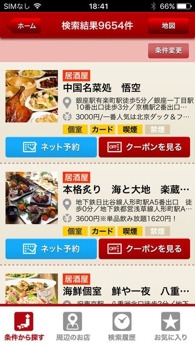 ・履歴検索、お気に入り機能も完備。別日に見ても、気に入ったお店がすぐ見つかります