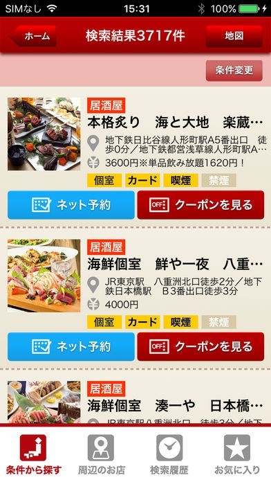 ・履歴検索、お気に入り機能も完備。別日に見ても、気に入ったお店がすぐ見つかります