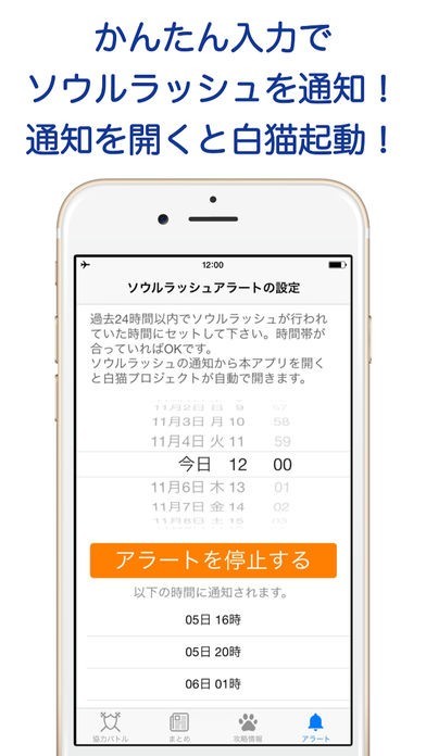 ・過去にソウルラッシュがあった時間にセットするだけかんたんソウルラッシュアラート設定