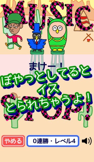 椅子取りゲームの緊張感を体感したいという方におススメです。椅子を取るという簡単なゲームでありながら、BGMがいつ止まるか分からない緊張感を味わえます。BGMの大きさは設定から調節可能です。