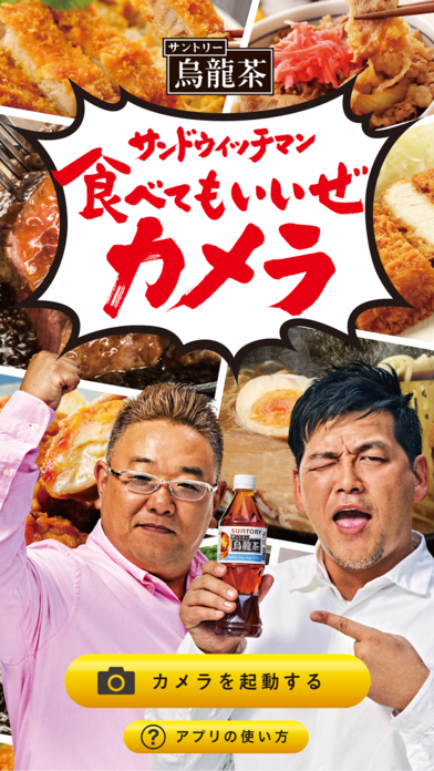 サントリー公式のカメラアプリです。CMでも大活躍のサンドウィッチマンがフレームに現れたり、シャッター音の変わりにかけ声を発します。二人ならきっと、カロリーが高い料理を食べ過ぎても許してくれるはず。