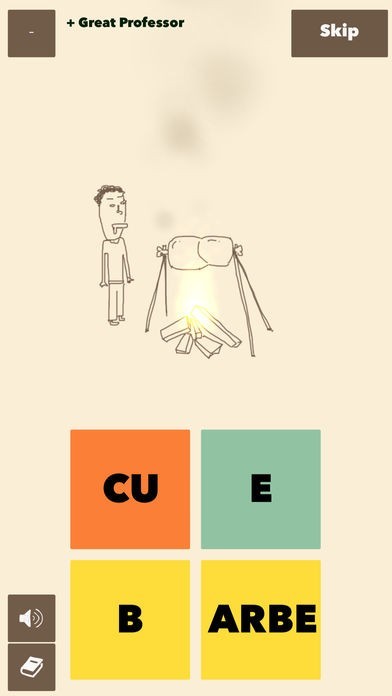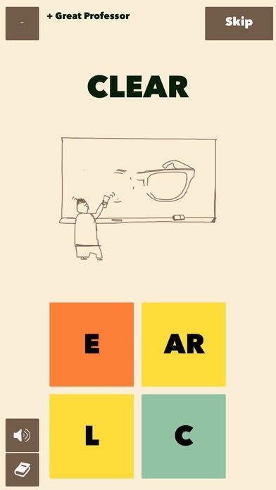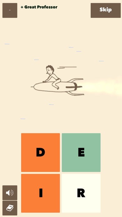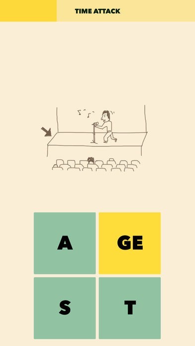 ○絵から単語を予想して、4つの四角を指でスライドし単語を作ります。