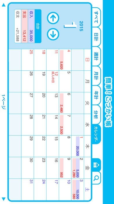 支出の管理には金額も重要ですが、いつ使ったのか分かることも必要です。週、月、年とカレンダー表示を切り替えて一目で無駄使いの日時を確認できます。計画的な貯蓄計画に欠かせないアプリです。
