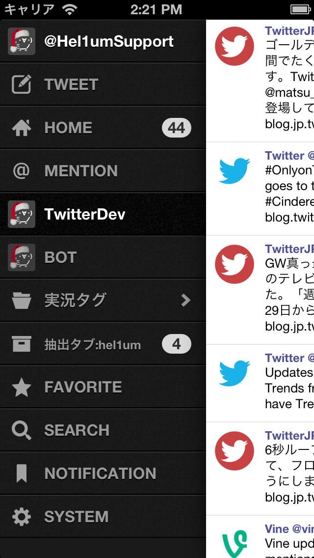 Twitterを利用・閲覧するためには公式アプリだけでなく、この「Hel1um」も利用可能です。 こちらのアプリは、とにかく軽快で、サクサクとTwitterを楽しめます。 タイムラインを自動で更新してくれる「UserStreaming」という機能に対応しているため、何もせずともタイムラインに新着ツイートがあれば自動でスクロールされ、まさにリアルタイムな情報を入手可能です。 また、いいね登録や、リツイートをするのにも簡単なアクションで使用できるので、直感的な操作で思うがままのアクションができます。
