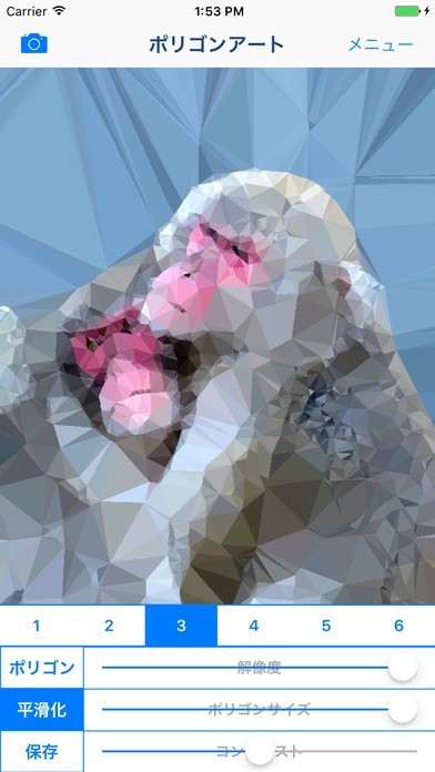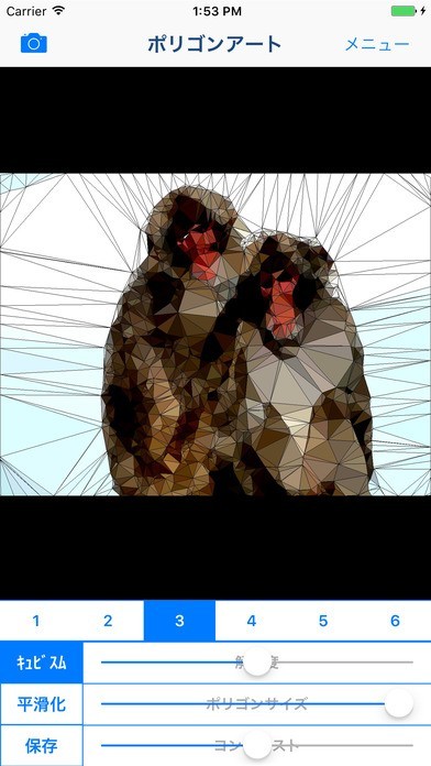 ちょっとレトロな3Dポリゴン風が楽しめる写真加工アプリ「ポリゴンアート」 ポリゴン風画像作成機能では6種類のフィルターを搭載し、それぞれ味のある加工を楽しむことができます。 キュビスム風画像作成機能では、ピカソの絵画で見られるような抽象絵画技法による写真加工が可能。 それぞれの加工画面には使いやすいスライドバーが用意されており、細かな調整が指先だけで簡単に行えるため、初心者さんでも気負うことなく加工に挑戦することができるでしょう。
