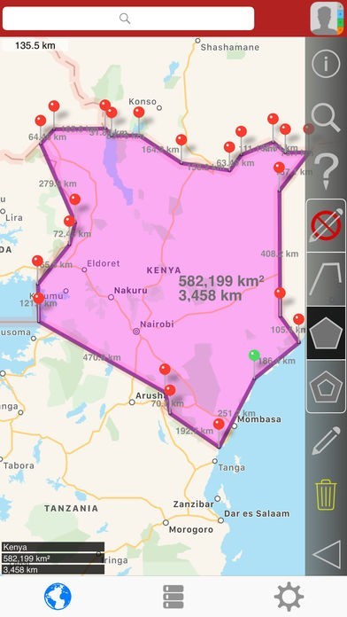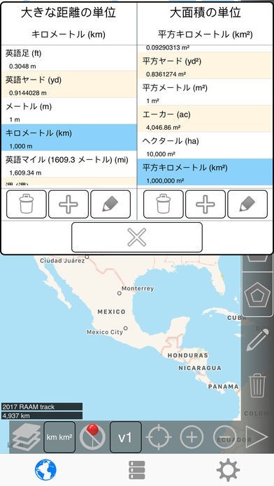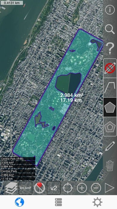 App Storeより引用建物、道路、公園、土地、国、湖、測定などの衛星ビューから。 距離、面積と周長を計算します。