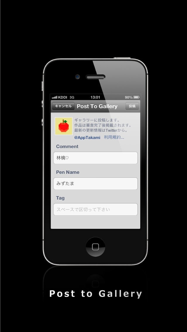 - ギャラリーへの投稿(コメント、ペンネーム、タグを記入)