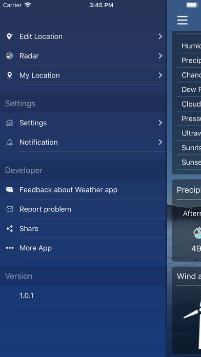 - 単位設定の変更:温度(C / F)、時間形式(12h / 24h)、降水量(mm、インチ)、風速(km / h、mi / h、m / s)、圧力(mmhg、hPa、mbar )