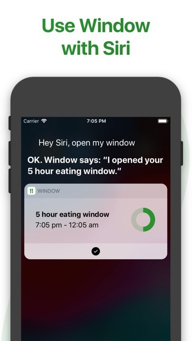 - Use Siri to open or close your eating window from any device (including iPhone, iPad, Apple Watch, and HomePod).