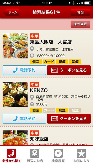 近くの中華料理店を調べて気軽に食事を楽しめます