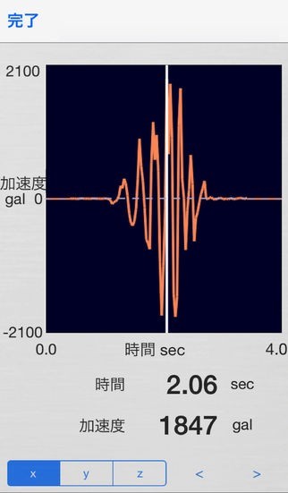 震度を測るだけではなく加速度をわかりやすいグラフで表示します。震度と合わせて知ることで、より正確に地震の規模を把握することが可能です。シンプルで使いやすい震度計アプリなので、手軽に使用できます。
