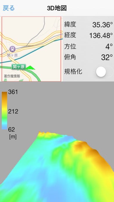 標高地図 SRTM3の利点はあらゆる場所の標高が分かるだけでなくHeatMapの表示をさせたり閾値以下の地域を表示させたりしてそれぞれの目的で必要な情報を得るために活用できるというのがあります。