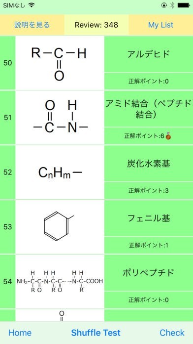 有機化学の構造式を暗記できて、いざそれを活かそうとしたときこのアプリに付属している問題を解くことでより理解が深まります。問題自体が入試レベルで実用的なレベルとなっており勉強が捗ります。