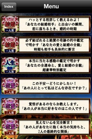 簡単に占いを試したいけど、どの占いが良いかよく分からないし本当によく当たる占いが知りたい…。そんな時にお勧めなのがこの占いアプリ。他の占いとは違ってハワイアン式12星座の占いが本当によく当たる!占師は「エリージョーンズ」で全米で最も当たると言われ芸能人もお忍びで通うほど人気!誕生日と性別を打ち込むだけで自分の運勢や開運法、性格診断が知れてしかもよく当たるのが嬉しい。課金をすれば自分の好きな人との相性診断や、将来の結婚相手についても占うことができます。課金をしなくても占い結果の内容がしっかりしているから充実した内容の結果に大満足できるアプリです。