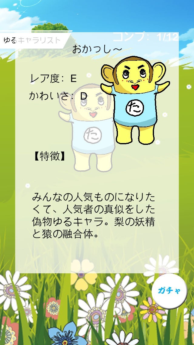 一度ガチャで出てきたキャラクターはコレクションとして、"ゆるキャラリスト"に保存されます。集めたキャラクターたちの詳細リストは、いつでも確認することができます。