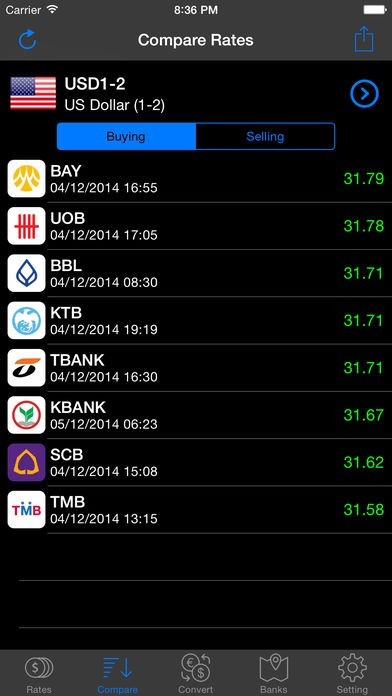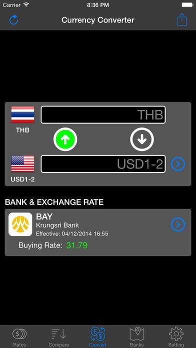 タイの通貨レートは銀行によって異なり、最も高いレートの銀行の表示が可能