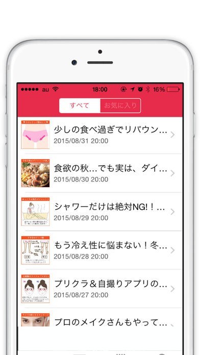むくみも解消リンパマッサージダイエットのアプリは、ダイエット方法や美容、健康法を毎日更新して新しい情報をどんどん発信してくれます。方法は画像一覧から選んだり、気に入った記事があれば、お気に入りで保存できます。リンパをマッサージして体に溜まりがちな老廃物や毒素の排出を促します。体のめぐりを改善し、スッキリとしてダイエットに効果があるだけでなく、きれいになるので美容にも効果があり、血行も良くなり体の中から健康にもなれます。家事や仕事の合間などに手軽にチェックし、実践できるものを集めています。 文字だけでなく画像で説明しているので、リンパの位置や方法がわかりやすくダイエットが長続きします。