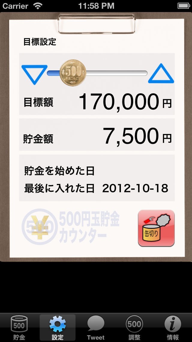 ・目標達成したら、目標額を上げるか、缶切りアイコンをタップしてリセットしてください。