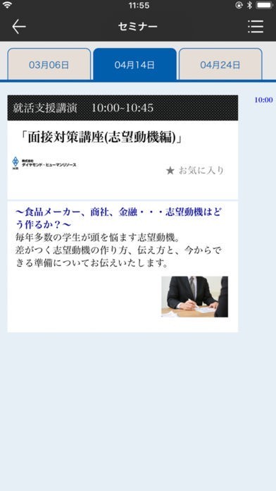 会場のフロアマップを表示させる事が可能なので、企業説明会の時に重宝するでしょう。人気の企業や注目を集めている会社を「お気に入り」に登録出来るのもメリットでしょう。