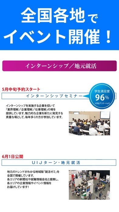 セミナー等の情報が受け取れると同時に、業種別に企業をリサーチ出来るのも特徴でしょう。日本各地の就活ニュースに対応していて、イベントの日程がまとめて把握出来るのも利点です。