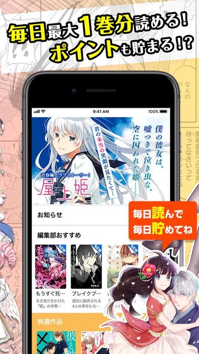 毎日定期的にアプリを立ち上げて漫画を読んでください。漫画を読むとポイントが付与されます。ゲットしたポイントは新しい漫画を読む時に使えます。無駄がなく実用的なアプリです。