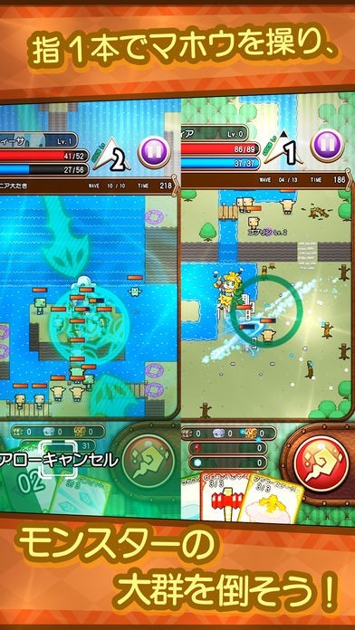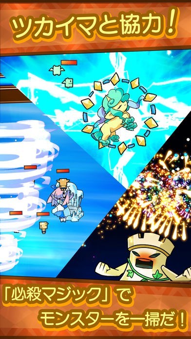 世界はゆるめでもゲームは歯ごたえたっぷり。モンスターの襲撃に耐えるためには、7種類のツカイマの特徴を上手く掴むことが重要です。「必殺マジック」を使えば、敵の大群を一網打尽にすることだってできます。