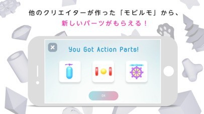 App Storeより引用3Dのパーツをつなげて新型移動体「モビルモ」を発明し、惑星を自由に探索できるゲームです。惑星で出会う他のユーザーが作ったモビルモからは、新しいパーツを分けてもらうことができます。さあ、Mobilmoでキミのワクワクをカタチにしよう!