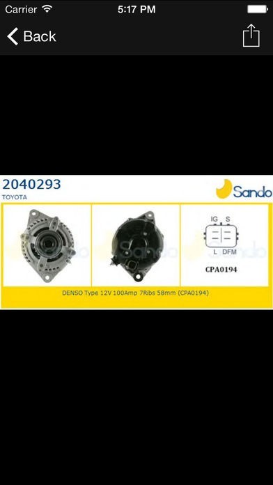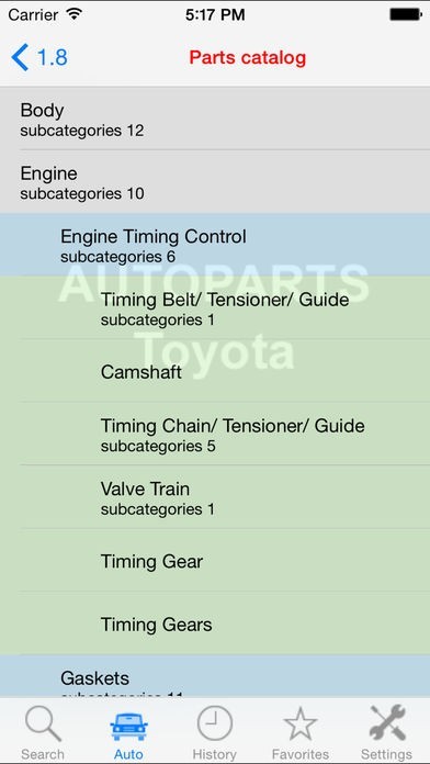 トヨタの自動車部品のスクリーンショット