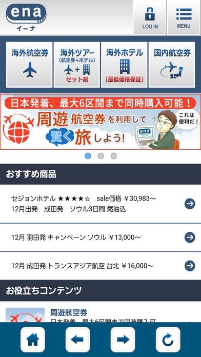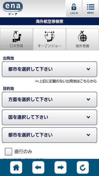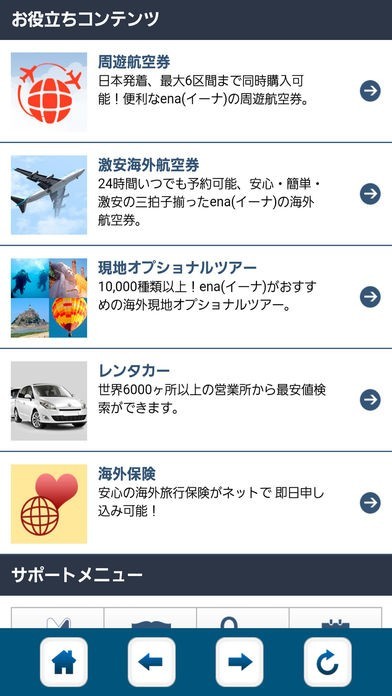 海外格安航空券24時間オンライン旅行&ツアー予約アプリena(イーナ)のスクリーンショット