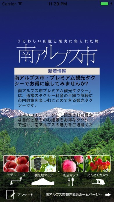 南アルプス市の観光スポット情報をiPhoneで閲覧することができる!