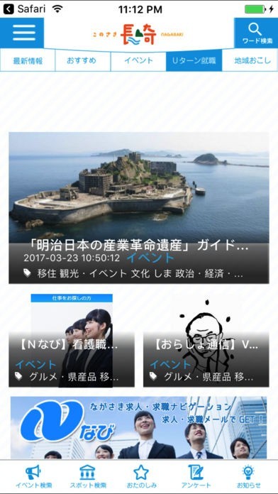・長崎県内のお祭りや出来事などのほか、就職セミナーや県内への移住情報などの旬