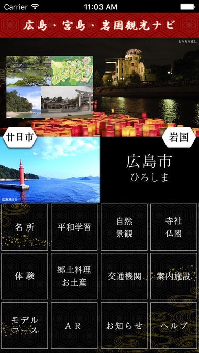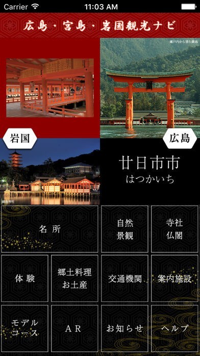 本アプリケーションを利用することで、広島市・廿日市・岩国市の観光名所はもとより 自然景観や 寺社仏閣、郷土料理などの 観光施設などを 位置情報や 一覧表で見ることができます。