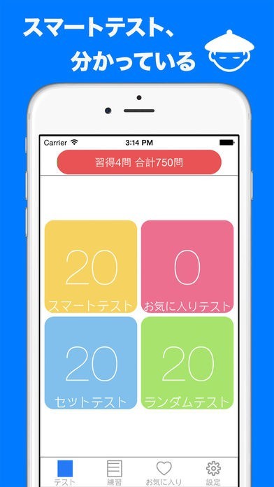 2、スマートテスト、お気に入りテスト、ランダムテストなど。