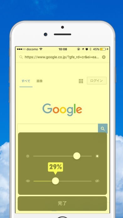ブルーライトカットで視力保護する高速ブラウザーのスクリーンショット
